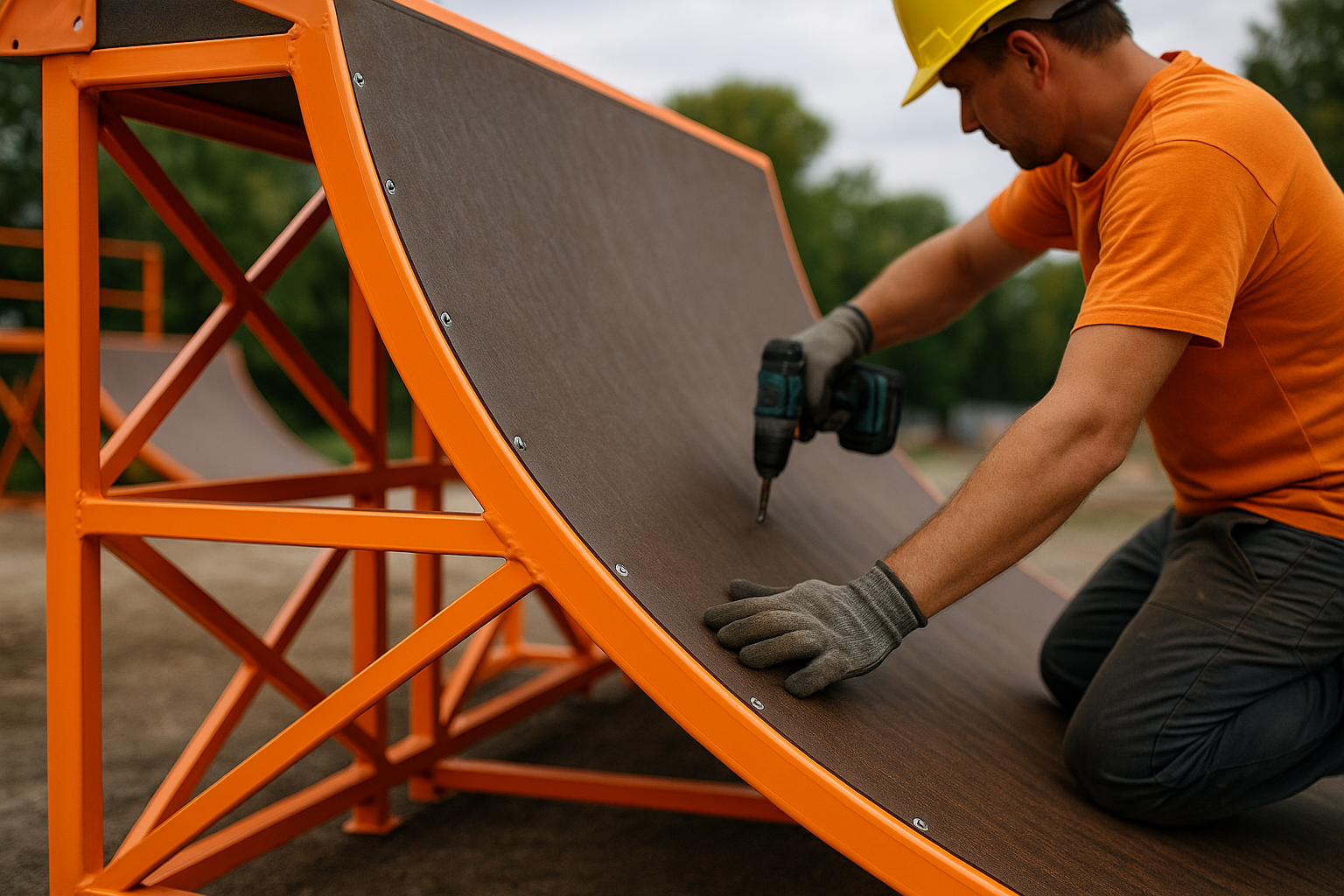 Совет эксперта: комбинируйте покрытия по сценарию использования: фанера — на базовых фигурах и учебных зонах, стеклопластик — на вылетах, радиусах и приземлениях с высокой динамической нагрузкой.